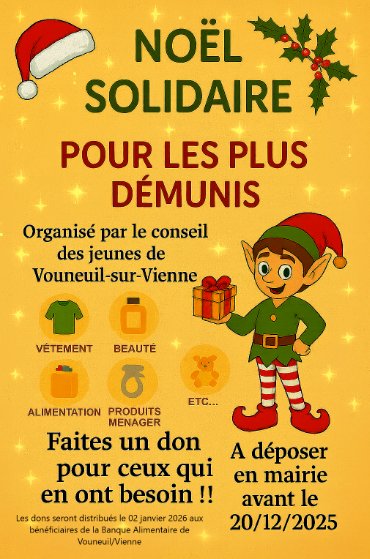 Le Conseil des Jeunes organise une collecte de dons, appel à la générosité, pour une opération Noël solidaire envers les personnes démunies.