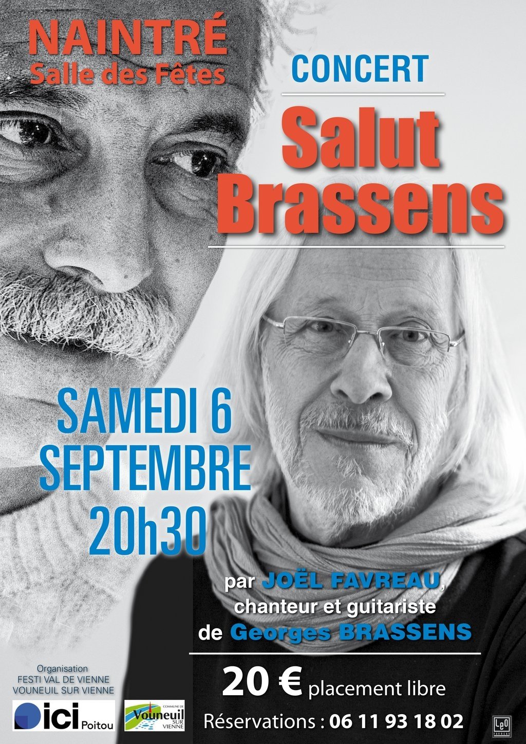 L’association Festi Val de Vienne organise le concert « Salut Brassens » interprété par Joël Favreau, chanteur et guitariste officiel de Georges Brassens, le Samedi 6 septembre 2025, à 20h30, à la Salle des Fêtes Robert Sauvion, à Naintré.