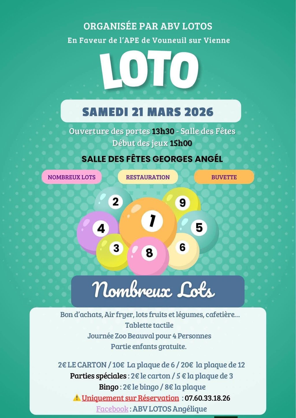 Loto organisé par l'APE de Vouneuil-sur-Vienne le samedi 21 mars 2026.