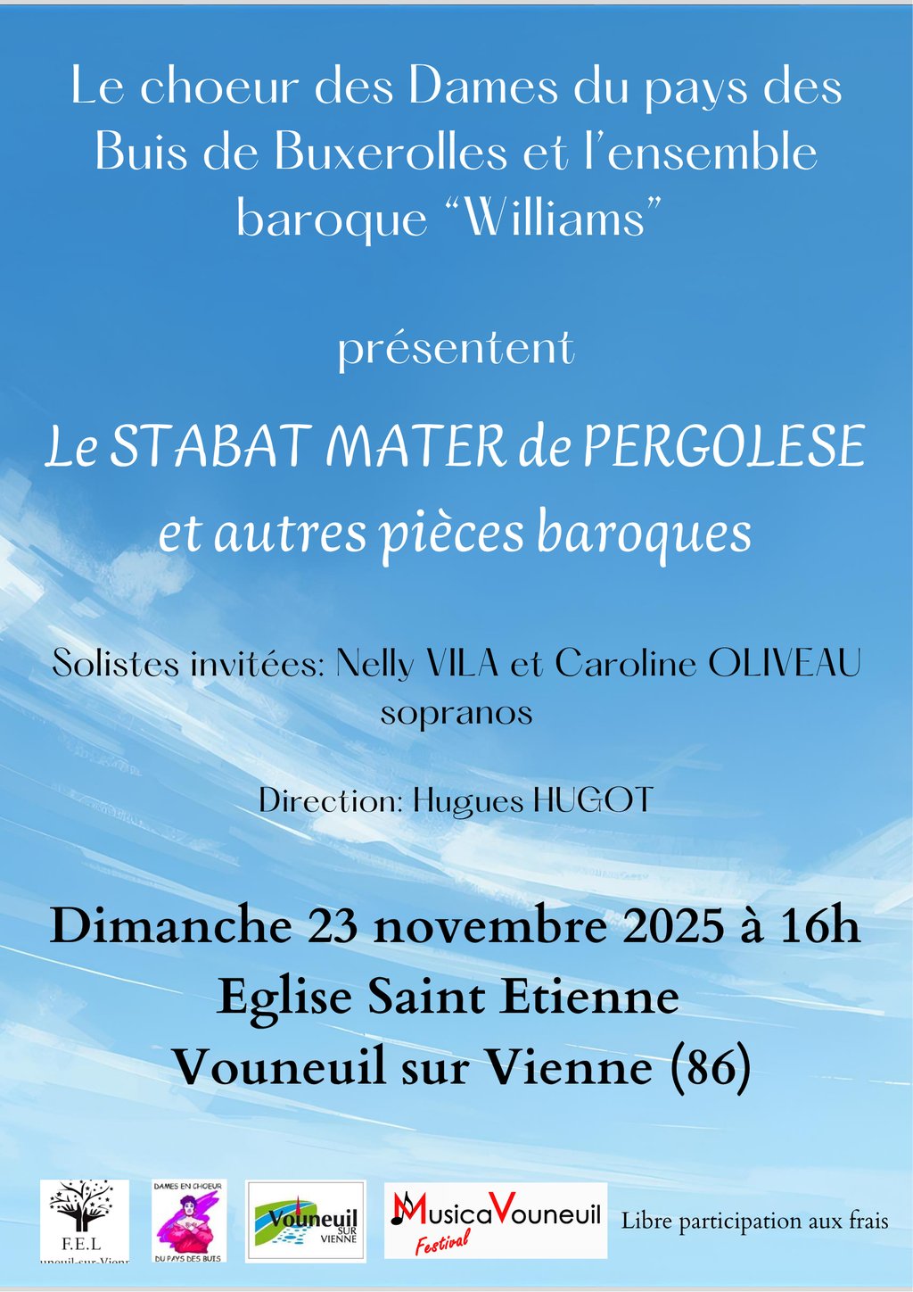 Nous avons le plaisir de vous inviter à un concert qui aura lieu à l’église Saint-Etienne, le dimanche 23 novembre 2025 à 16h00.