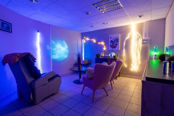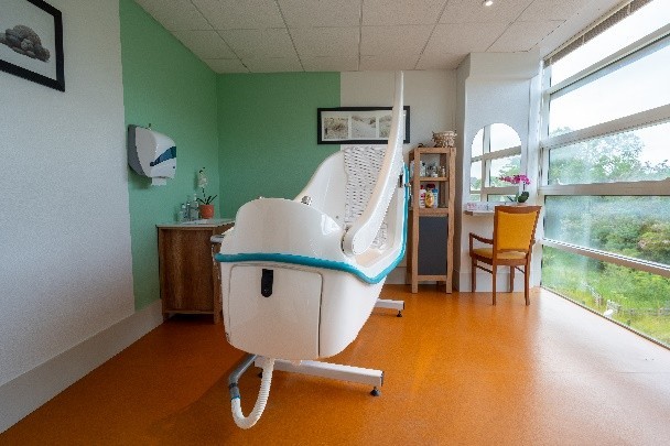- Confort et détente : chambres individuelles lumineuses, petits salons pour se retrouver, espace multisensoriel et balnéothérapie pour la relaxation et les soins bien-être.